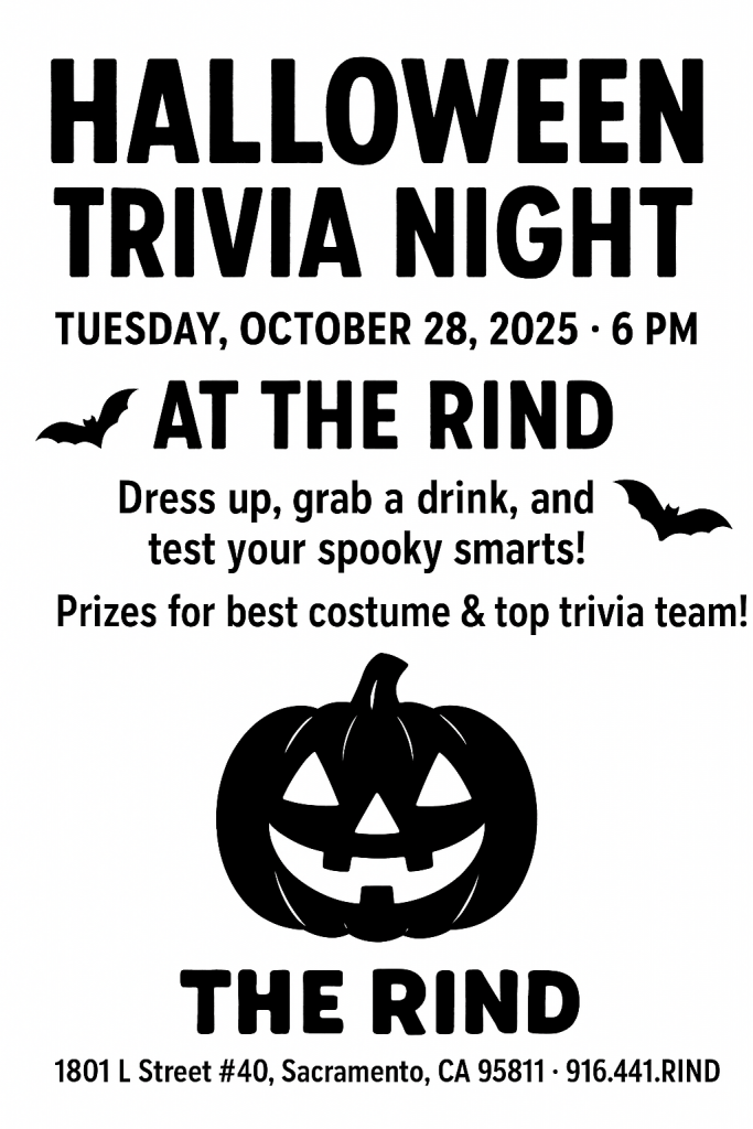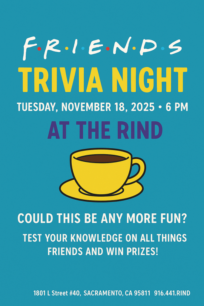 Limited Seating, so reserve your spot now! Call The Rind at (916) 441-7463 to reserve your space.