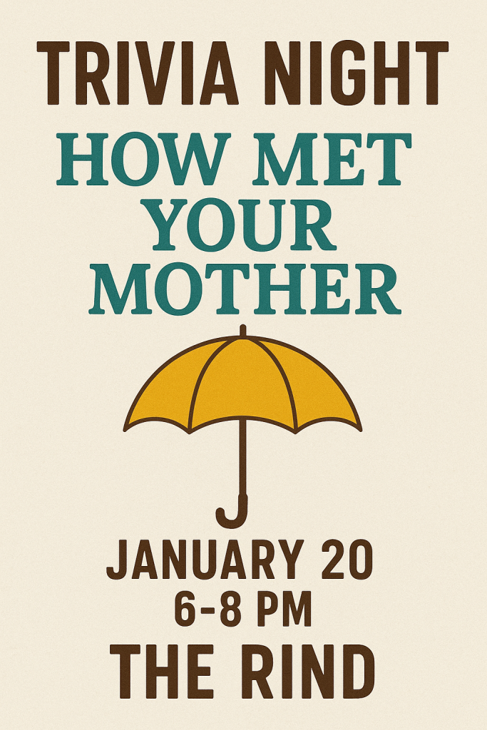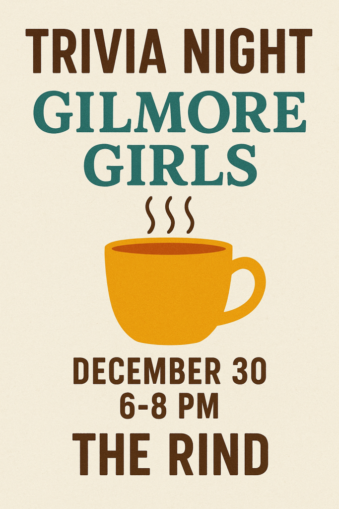 TRIVIA TRIVIA No RSVP’s needed, but show up early and snag your seats with your friends! Teams no greater than 6 please 🙂 Gilmore Girls Themed Trivia :: December 30th, 6-8 PM at The Rind How I Met Your Mother Themed Trivia :: January 20th, 6-8 PM at The Rind